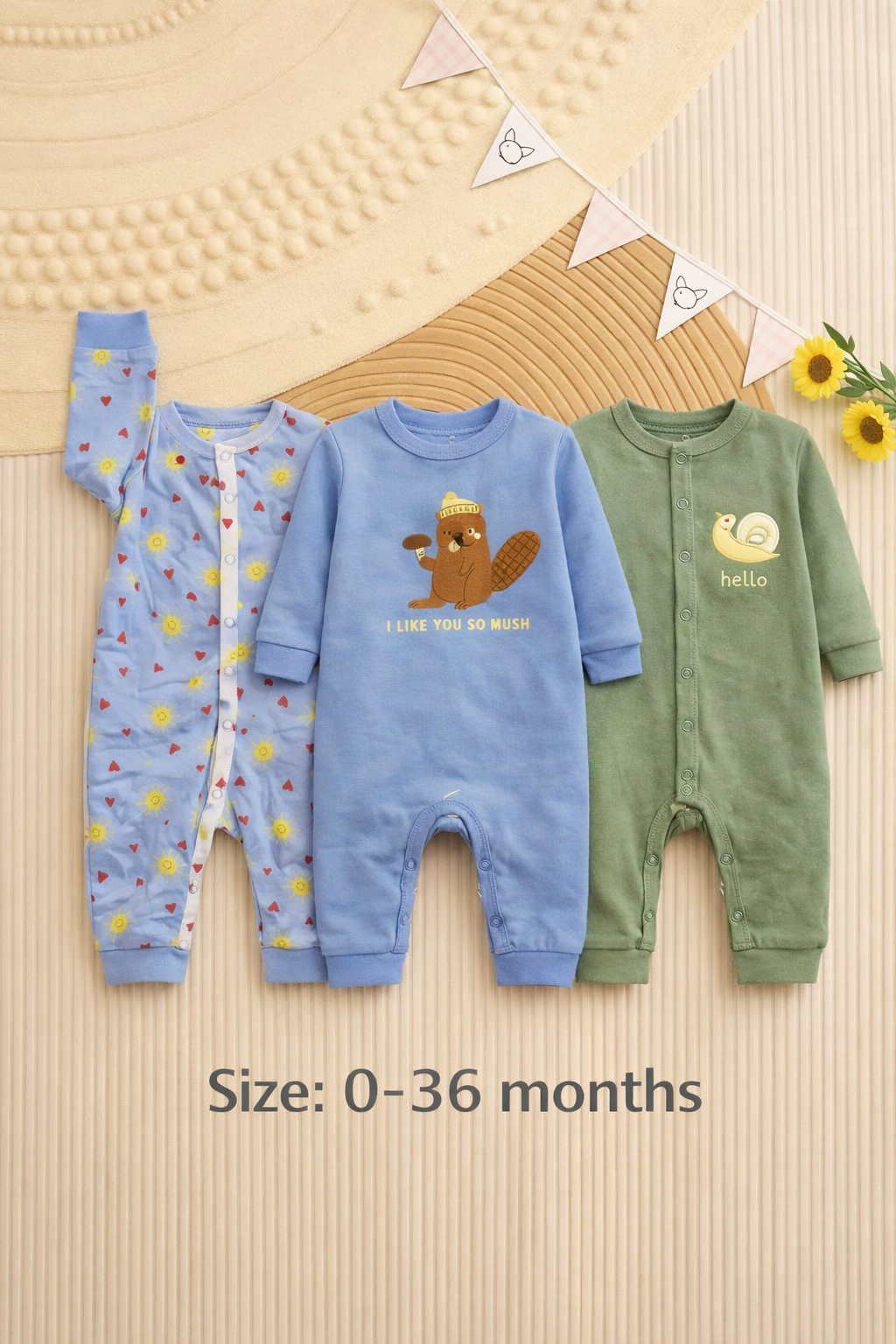 বেবি লং রম্পার 3 পিসের কম্বো।