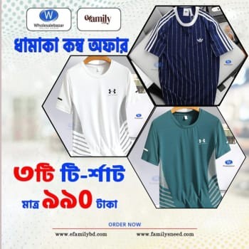৩ পিসের কম্বো টিশার্ট। হোয়াইট , নেভি এবং ব্লাক কাল...